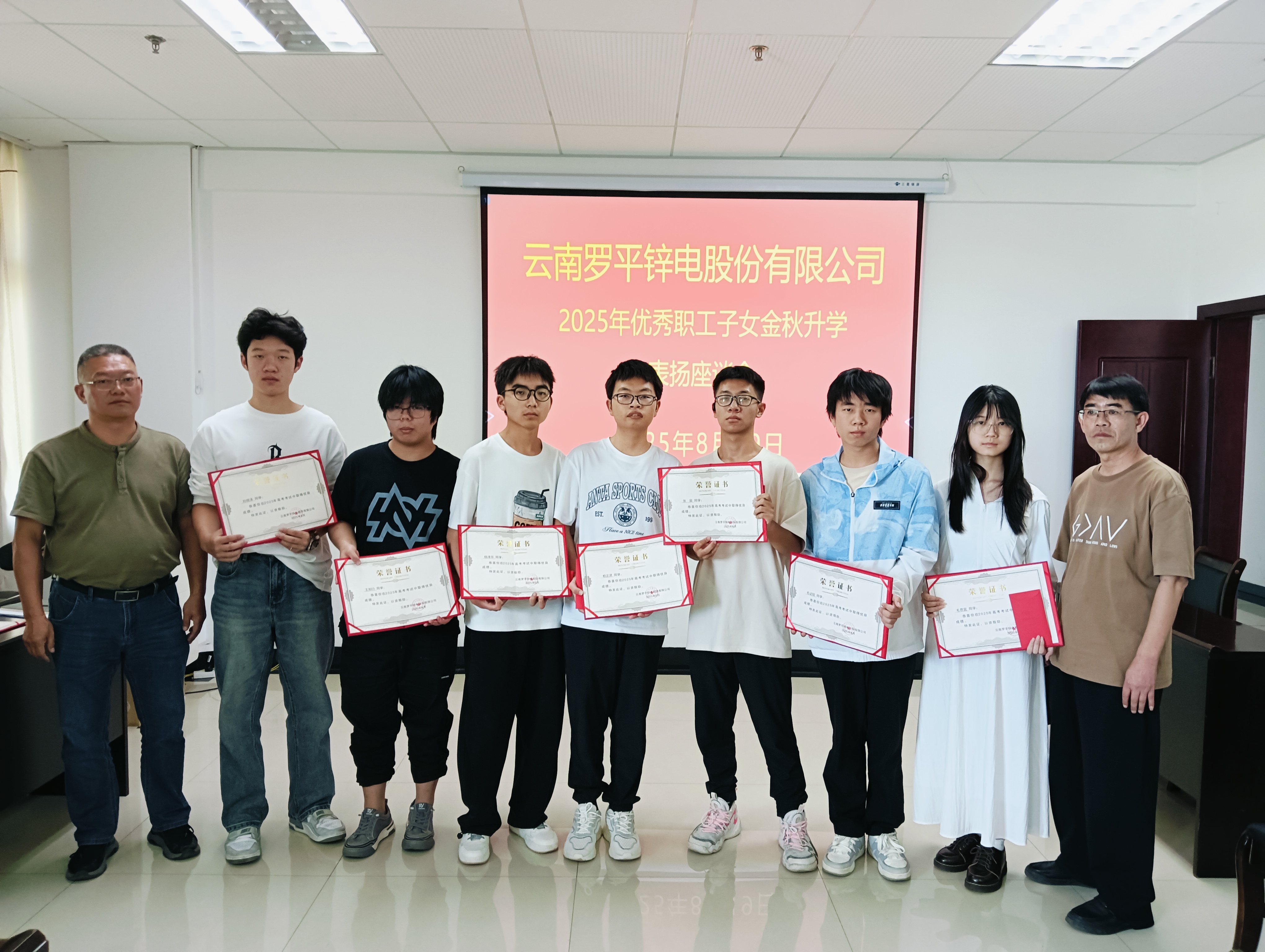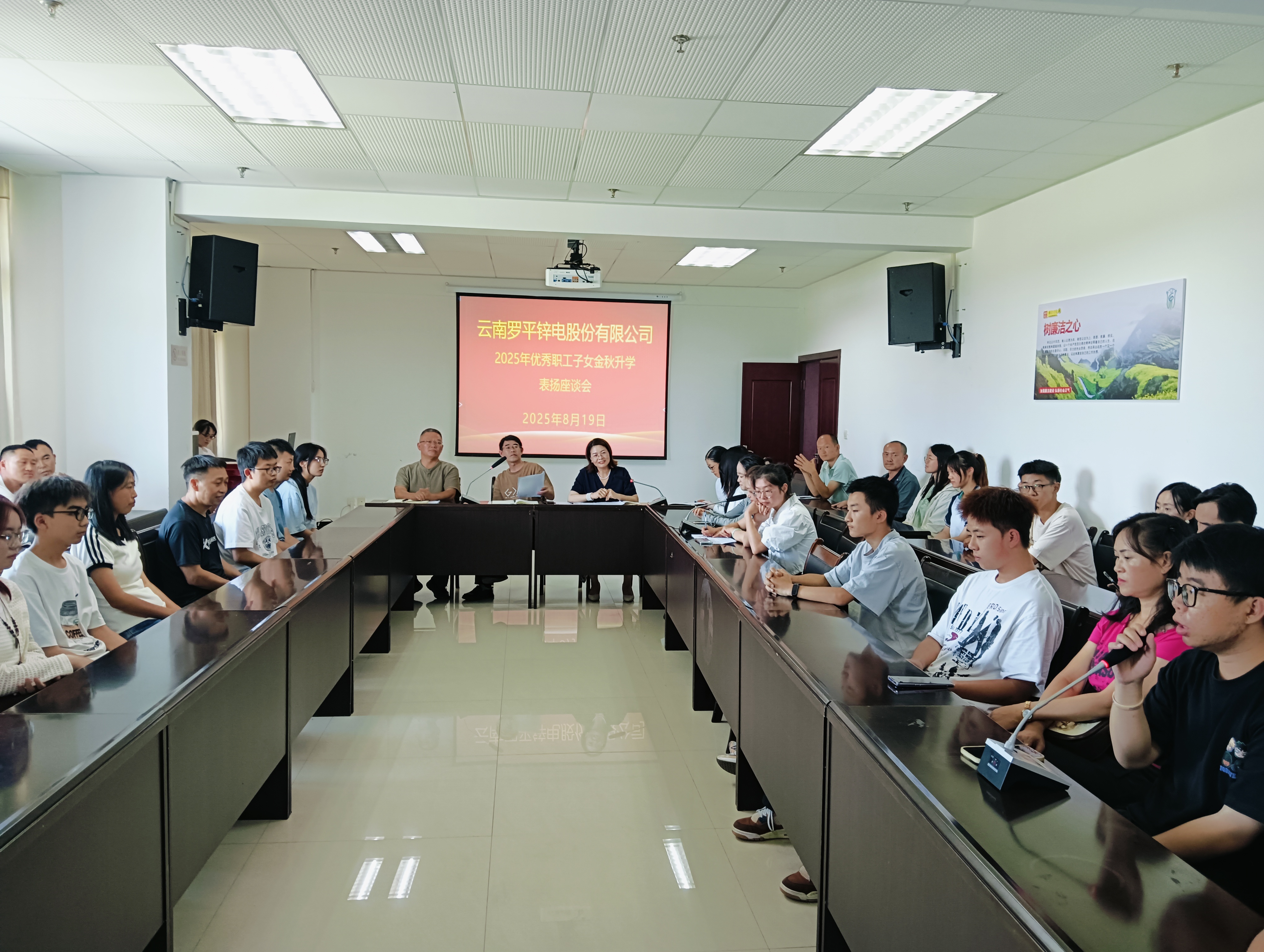 座谈会上,优秀职工子女和家长代表分别作了交流发言;公司有关领导到会祝贺,并为优秀学子们颁奖,共为9名考取研究生、27名高考取得优异成绩、3名考上曲靖一中的职工子女发放奖学金95000.00元。